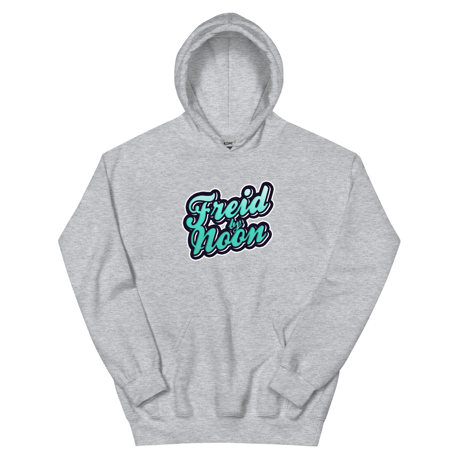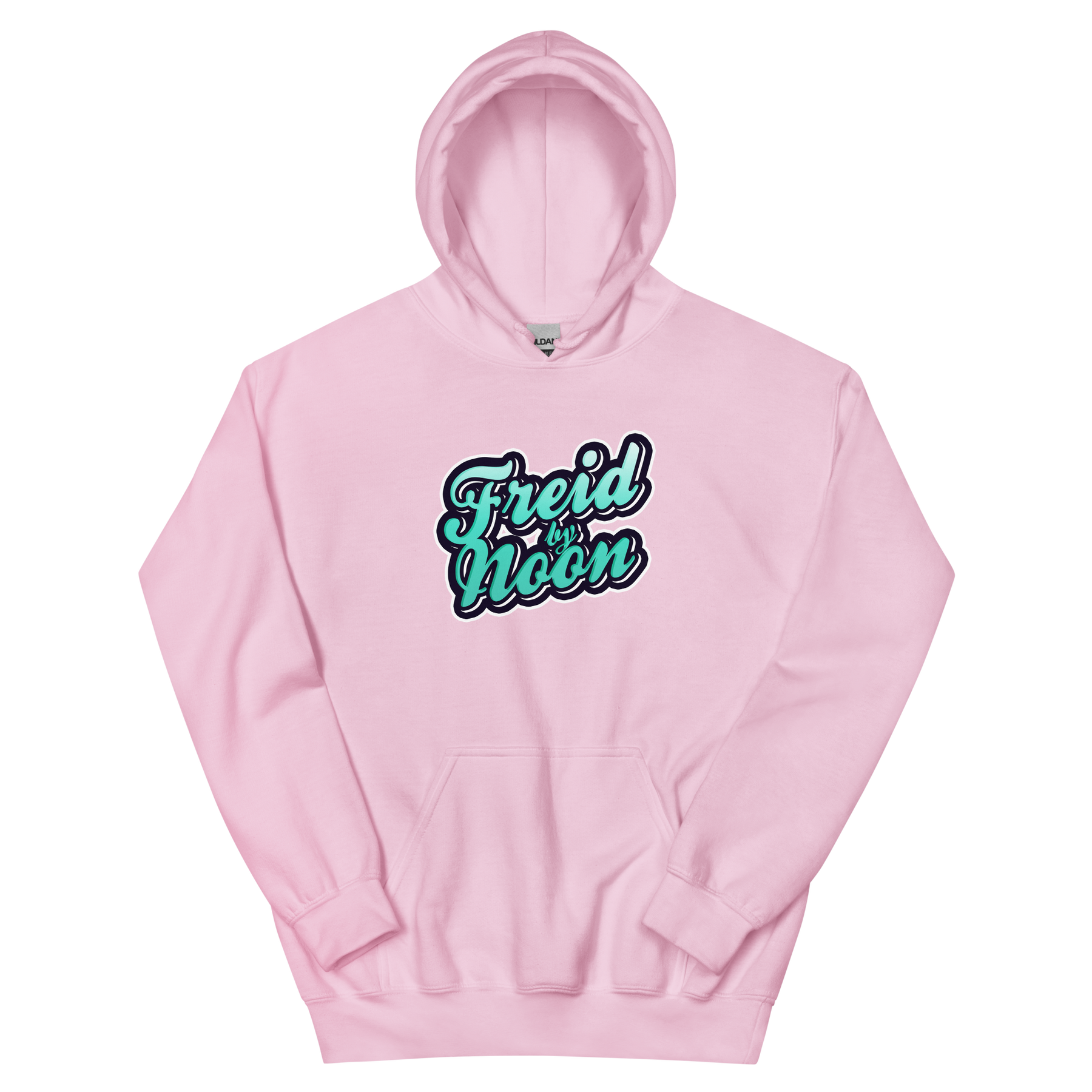 "Freid by Noon" printed in blue, white, and black. Available in multiple color options. Product details: