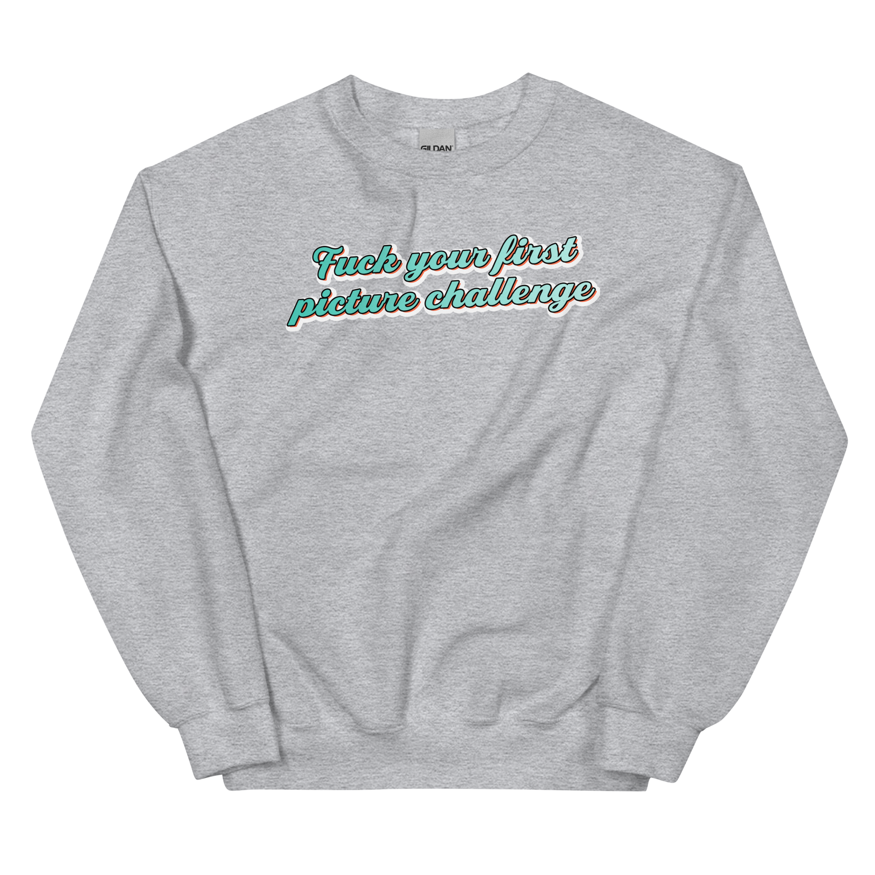 Fuck Your First Picture Challenge design. Available in multiple color options. Product details: